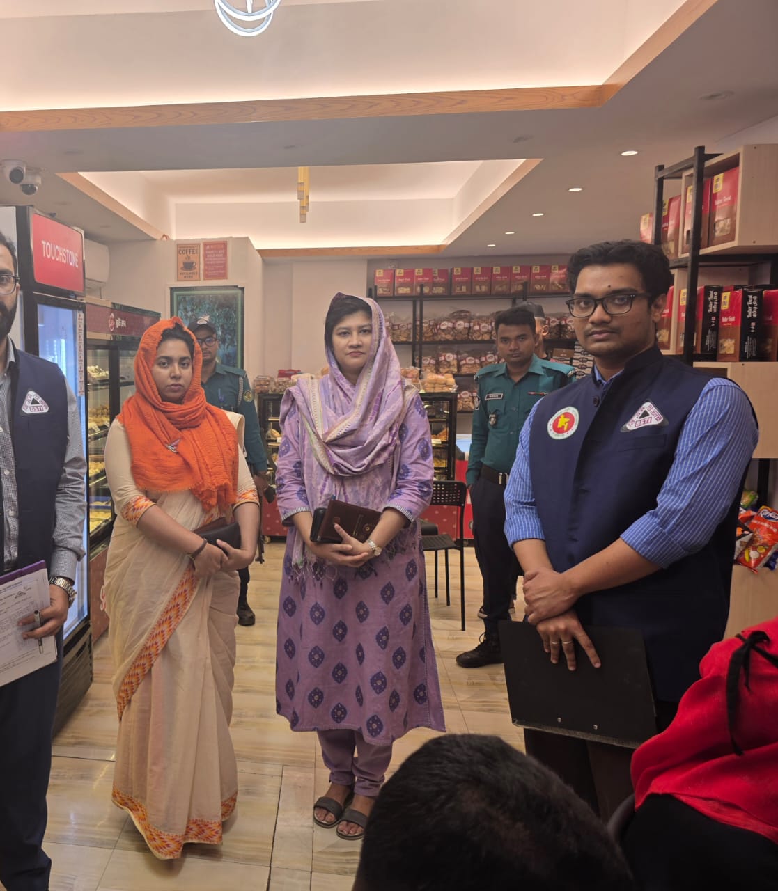 উক্ত অভিযানে চট্টগ্রাম জেলা প্রশাসনের সহকারী কমিশনার ও নির্বাহী ম্যাজিস্ট্রেট জনাব শিফাত বিনতে আরা এর নেতৃত্বে পরিচালিত হয়। এতে সুইট বাংলা বেকারি, চকবাজার, চট্টগ্রাম নামীয় প্রতিষ্ঠানকে বিস্কুট, সুইটমিটস, কেক, ডেকোরেটেড কেক, ফার্মেন্টেড মিল্ক, চানাচুর পণ্যের সিএম লাইসেন্স সংক্রান্ত মিথ্যা তথ্য প্রদান করায় 'বিএসটিআই আইন-২০১৮' ১৫ (১)/২৭ ধারা অনুসারে ২৫ হাজার টাকা জরিমানা করা হয়।