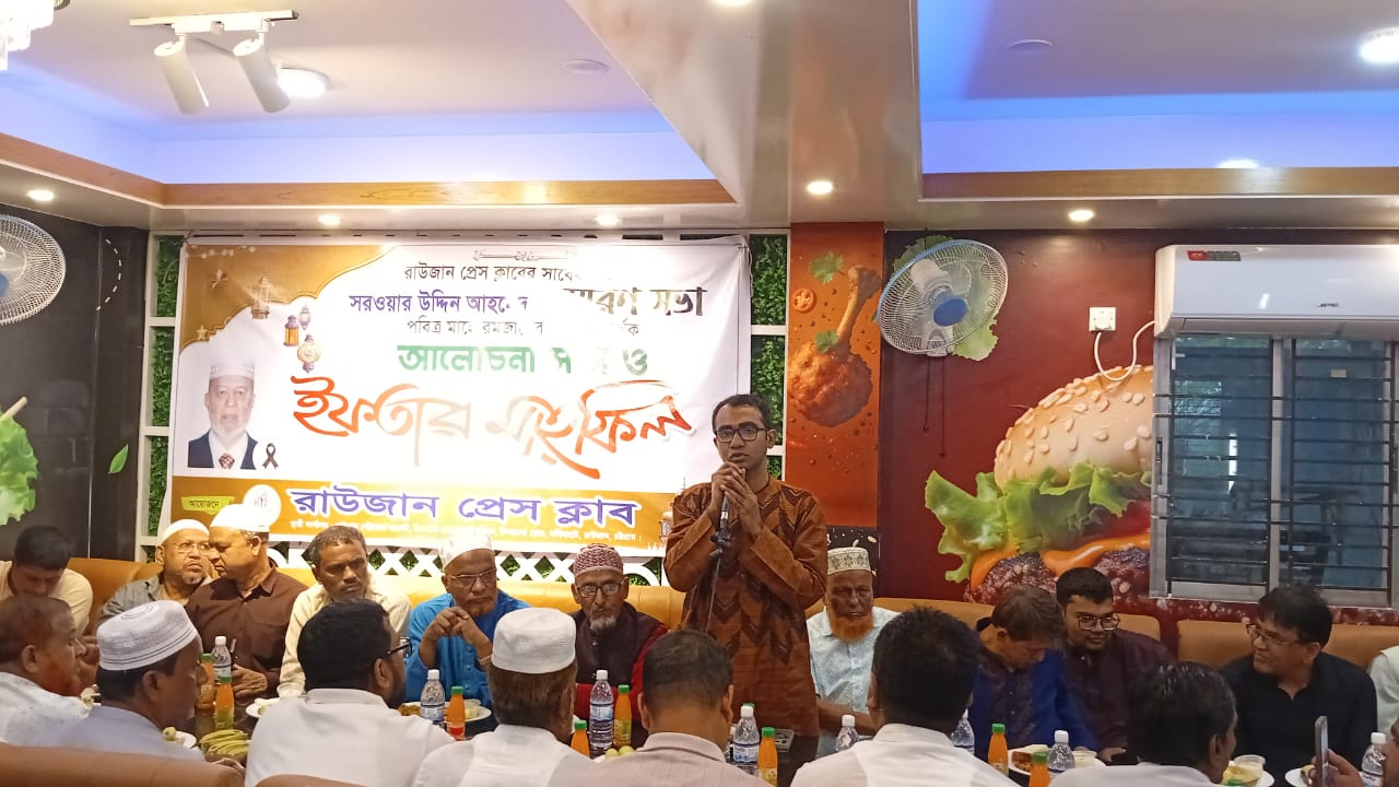 চট্টগ্রাম প্রেস ক্লাবের সদস্য ও রাউজান প্রেস ক্লাব-এর আমৃত্যু সভাপতি মরহুম সরোয়ার উদ্দিন আহমেদের স্মরণসভা, পবিত্র মাহে রমজানের তাৎপর্য শীর্ষক আলোচনা সভা ও ইফতার মাহফিল যথাযোগ্য মর্যাদায় অনুষ্ঠিত হয়েছে। ১১ই রমজান ১লা মার্চ রবিবার বাদে আছর উপজেলা সদরের রাঙ্গামাটি মহাসড়কস্থ কুইন প্যালেস রেষ্টুরেন্টের হল রুমে আয়োজিত অনুষ্ঠানে প্রধান অতিথি ছিলেন রাউজান উপজেলা নির্বাহী কর্মকর্তা এস. এম. রাহাতুল ইসলাম।
