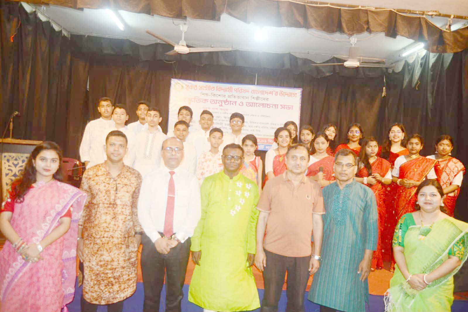 সুকণ্ঠ সংগীত বিদ্যার্থী পরিষদ বাংলাদেশ'র উদ্যোগে শিশু - কিশোর প্রতিভাবান শিল্পীদের সাংস্কৃতিক অনুষ্ঠান ও আলোচনা সভা ১৯ এপ্রিল রবিবার বিকাল ৬ টায় জেলা শিল্পকলা একাডেমির আর্ট গ্যালারী হলে অনুষ্ঠিত হয়। বিদ্যার্থী পরিষদের সভাপতি অরুণ নাথ এর সভাপতিত্বে উদ্বোধক ছিলেন কণ্ঠ শিল্পী, সুরকার,বাংলাদেশ বেতার ও টিভি'র সঙ্গীত পরিচালক সুব্রত দাশ অনুজ।প্রধান অতিথি ছিলেন বাংলাদেশ বেতার ও টেলিভিশন এর গীতিকার চট্টগ্রাম কলেজ প্রাক্তন অধ্যক্ষ বিশিষ্ট শিক্ষাবিদ প্রফেসর মো: আবুল হাসান, সংবর্ধেয় অতিথি ছিলেন আর্য সঙ্গীত সমিতির অধ্যক্ষ শিল্পী মৃণালিনী চক্রবর্তী, বিশেষ অতিথি ছিলেন মাই টিভি চট্টগ্রাম ব্যুরো প্রধান মো: নুরুল কবির, সম্মানিত অতিথি ছিলেন সাপ্তাহিক শিক্ষা সংবাদ এর সম্পাদক দেওয়ান মামুনুর রশীদ, ঋতুপর্ণা চৌধুরীর সঞ্চালনায় শুভেচ্ছা বক্তব্য রাখেন পরিষদের সাংগঠনিক সম্পাদক রুবেল চৌধুরী। অতিথিদের ফুল দিয়ে বরণ করে নেন বিদ্যার্থী পরিষদের সদস্যরা, এরপর সংবর্ধেয় অতিথি, প্রধান অতিথি ও বিশেষ অতিথিদের সম্মাননা স্মারক তোলে দেন আনিকা দাশ চৌধুরী ও রুবেল চৌধুরী। বক্তরা বলেন সঙ্গীত চর্চা মানুষকে মানবিকতা শেখায়, আজকের প্রতিভাবানরা আগামীতে দেশের বাহিরে গিয়ে সুনাম বয়ে আনবে। দ্বিতীয় পর্বে "ধন ধান্যে পুষ্প ভরা " সমবেত সঙ্গীত পরিবেশন করেন বিদ্যার্থী পরিষদের শিল্পীবৃন্দ। এর পর একক সঙ্গীত পরিবেশন করেন সারদা স্বয়ংপ্রভা ঘোষ,রোদ্দুর দে,সংহিতা নন্দী,হিমু আইচ,সৌমিল শ্রীহান দত্ত, দ্বৈত সংগীত পরিবেশন করেন অর্চিতা দে - অনুঙ্কা দে,এর পর একক সঙ্গীত পরিবেশন করেন অন্বেষা ধর,দিবাকর ভট্টাচার্য, অর্ঘ্যদীপ সরকার, দ্বৈত সংগীত পরিবেশন করেন অবন্তী সরকার ও পিহুনা সরকার, একক সঙ্গীত পরিবেশন করেন সুরাঙ্গনা রায় চৌধুরী, এর পর দ্বৈত সংগীত পরিবেশন করেন রাগবীর বসাক ও রাজবীর বসাক,একক সঙ্গীত পরিবেশন করেন সানিয়া নোমান,শুভ্রনীল দাশ,অভ্রনীল দে,দীপান্ত ভট্টাচার্য, ইন্দ্রদীপ ভট্টাচার্য। "আমরা সবাই রাজা" সমবেত রবীন্দ্র সঙ্গীত এর মধ্যদিয়ে অনুষ্ঠান শেষ হয়। শিল্পীদের পরিবেশনা উপস্হিত দর্শক - শ্রোতারা মন্ত্রমুগ্ধ হয়ে উপভোগ করেন। রবীন্দ্র, নজরুল, লালন , পল্রী গীতি, আধুনিক গান পরিবেশন করে শ্রোতাদের মন জয় করে নেন। যন্ত্রাসঙ্গে যারা সহযোগিতা করেছেন কী বোর্ডে পঙ্কজ, তবলায় সানি দে,অক্টোপেড প্রণব, গিটারে রাজীব দাশ প্রমুখ।
